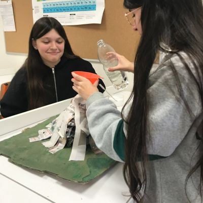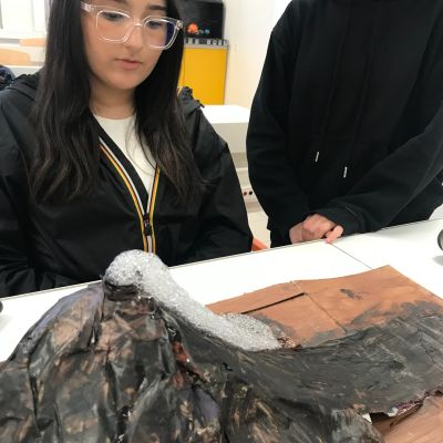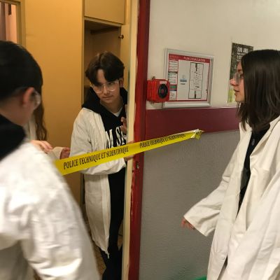 Cette semaine c’est tâche finale ! Les élèves de l’option LCE DNL Anglais ont réalisé leur projet de fin de séquence après plusieurs semaines de travail. A la manière des Experts de leur série préférée, ils ont pu analyser un scène de crime plus vraie que nature. Ils ont prélevé des cheveux, relevé des empruntes digitales, afin d’émettre des hypothèses sur le coupable. En 4e, les élèves ont joué les scientifiques avec des modèles de volcans.