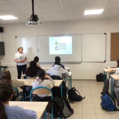 Mardi 19 mars, Action Contre la Faim a présenté aux élèves de 6e les différentes actions menées par l'association. Chaque année, cette organisation se mobilise pour un pays en particulier, et pour cette année, le Bangladesh bénéficiera des dons collectés. Avec les élèves de CM1/CM2 de l'école René Bonpain, nos élèves de 6e participeront au cours du mois de mai à un défi sportif afin de collecter des fonds pour soutenir l'association dans ses projets, notamment la lutte contre la sous-nutrition.