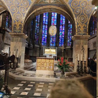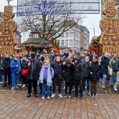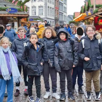 11 élèves germanisants du collège ont eu l’occasion de partir en Allemagne avec 43 élèves d’un autre établissement pour d’une part marcher dans les pas de Charlemagne et visiter la cathédrale d’Aix-la-Chapelle, ce haut lieu du patrimoine germanique classé parmi les plus joyaux enregistrés à l‘UNESCO, et pour se rendre d’autre part sur le marché de Noël de la ville classé lui aussi comme l’un des plus beaux et célèbres marchés de Noël allemands. Outre cette immersion à la fois culturelle, historique et linguistique, ils ont également pu se rendre chez Lindt afin d’y acheter et savourer quelques douceurs. Une journée bien remplie qui restera à coup sûr dans les mémoires. Rentrés le soir avec des étoiles plein les yeux et plein de choses à raconter, les élèves m’ont déjà soumis l’idée et l’envie très grande d’y retourner l’année prochaine. Madame Schricke