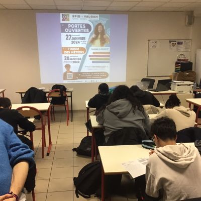 Lundi 11 décembre, au matin, les élèves de 4e ont assisté à une présentation du Work Friday, le forum des métiers organisé chaque année par le lycée EPID-Vauban. Le Work Friday aura lieu le vendredi 26 janvier 2024. Les portes-ouvertes de l'EPID-Vauban se tiendront le samedi 17 janvier 2024.