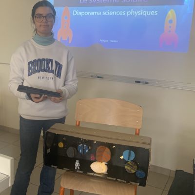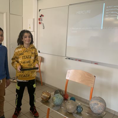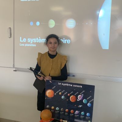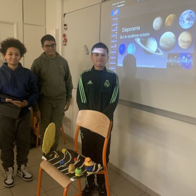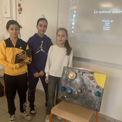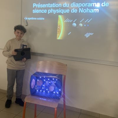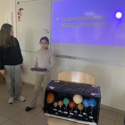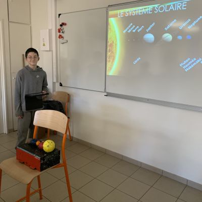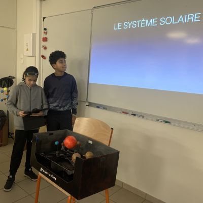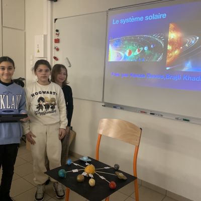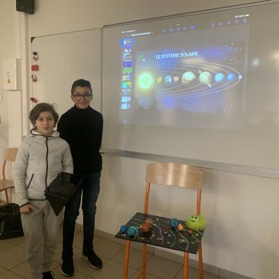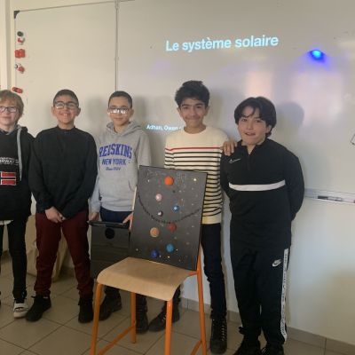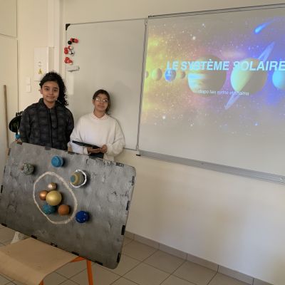 Dans le cadre du programme des Sciences-Physiques et du projet sur la possibilité de vivre sur Mars, les élèves de 6ème ont réalisé une remarquable maquette du système solaire. Ils ont ensuite partagé leur travail avec la classe lors d'une présentation captivante ! 🚀🌟