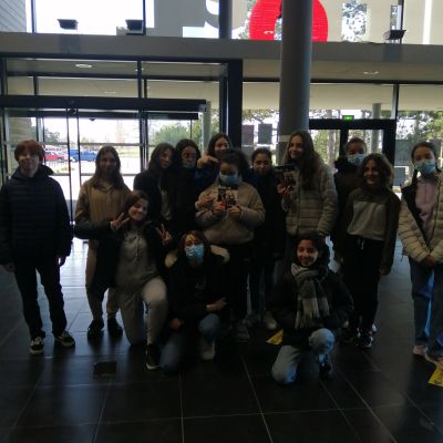 Voici nos élèves de l' Atelier théâtre, animé par Mme Huyghe, professeure d'anglais au collège et Mme Hugue, professeure de français en sortie le jeudi 7 Avril au Palais du littoral à Grande-synthe. Ils ont assisté au spectacle intitulé 'Jimmy n'est plus là', mis en scène par Guillaume Kerbusch de la Compagnie "Trou de ver". Nos élèves ont été attentifs durant le spectacle et ont même pu échanger ensuite avec les trois comédiennes de la pièce sur les différents thèmes présentés. Ils ont été actifs au niveau des questions posées. L'échange a été agréable pour tout le monde.
