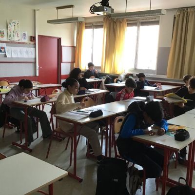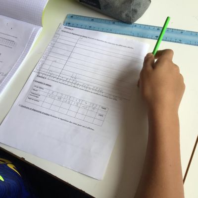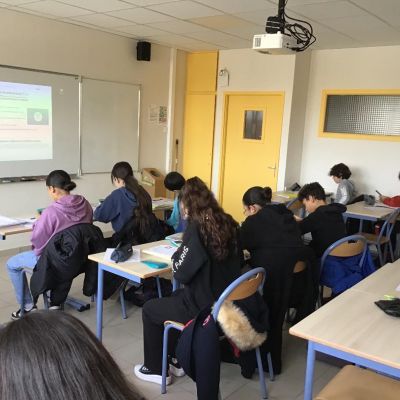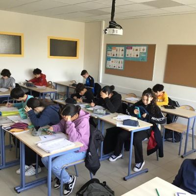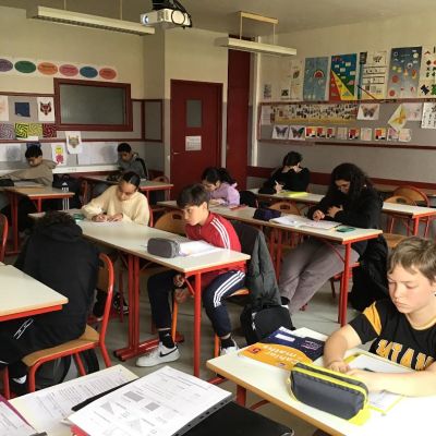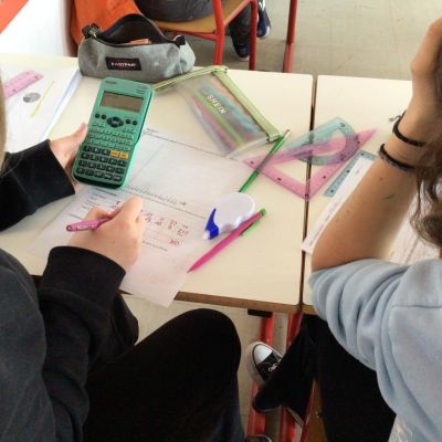 En classe de 5e, les élèves travaillent autour d’un EPI (Enseignement Pratique Interdisciplinaire) dans différentes matières. Après une séquence menée autour du harcèlement en cours d’EMC avec Monsieur Faes, les élèves ont également réalisé des affiches dans le cadre du concours national « Non au Harcèlement ! ». Un vote a été réalisé au sein du collège afin de désigner la meilleure affiche. Madame Dubus et Monsieur Rogée, professeurs de mathématiques, ont exploité les résultats de ce vote afin de proposer un devoir portant sur les statistiques. Les élèves ont notamment pu construire des diagrammes en bâtons et circulaires.