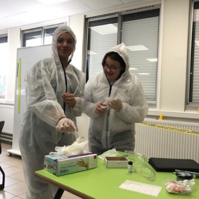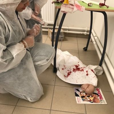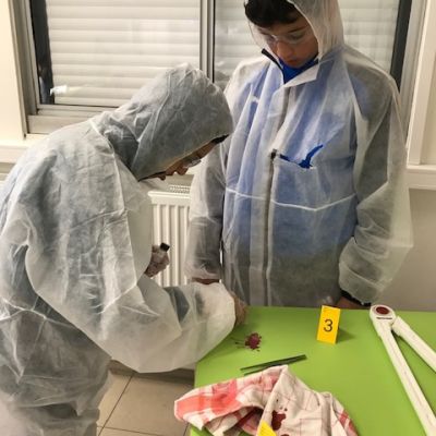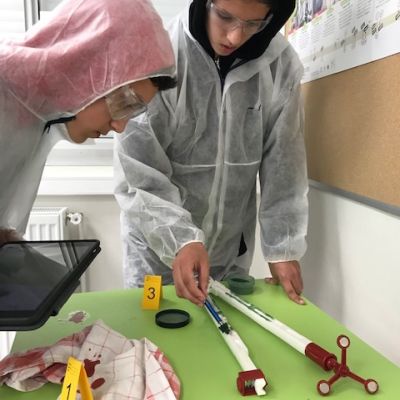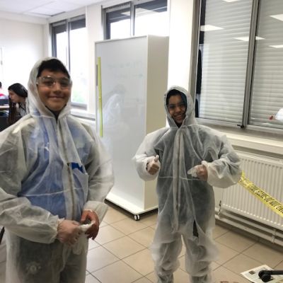 Mais que se passe-t-il au collège René Bonpain? Un crime a eu lieu en salle 201 avant le cours de DNL SVT (section LCE), les élèves ont dû relever les preuves comme de vrais scientifiques et émettre des hypothèses sur ce crime mais tout cela.... en anglais ! Merci à eux d’avoir joué le jeu pour une évaluation pas comme les autres...
